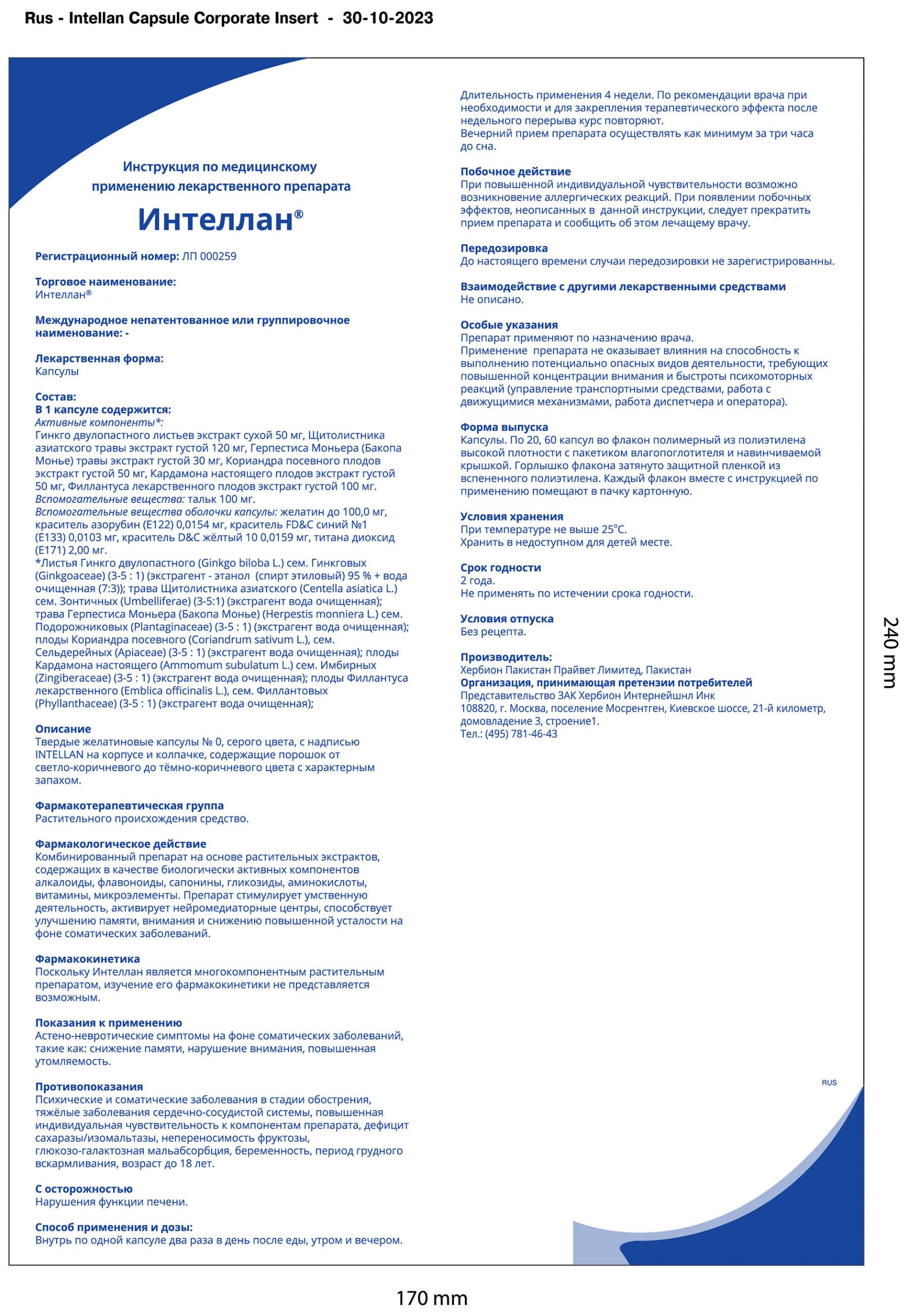 Интеллан капсулы. Капсулы. По 20 капсул в пластиковый флакон с пакетиком влагопоглотителя, укупоренный завинчивающейся пластиковой крышкой. Каждый флакон вместе с инструкцией по применению помещают в картонную пачку.